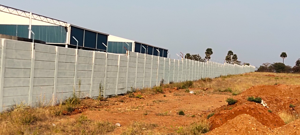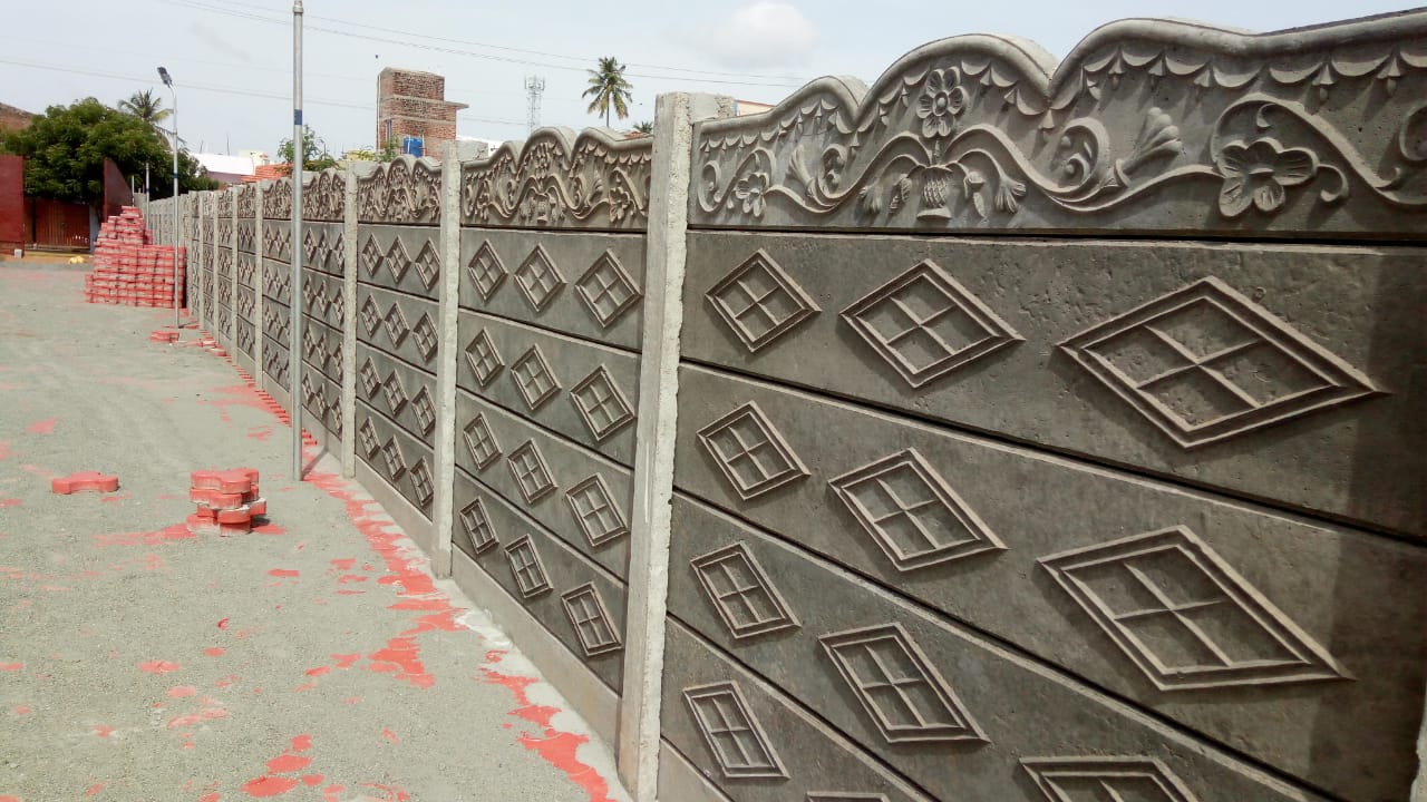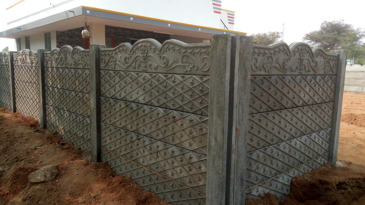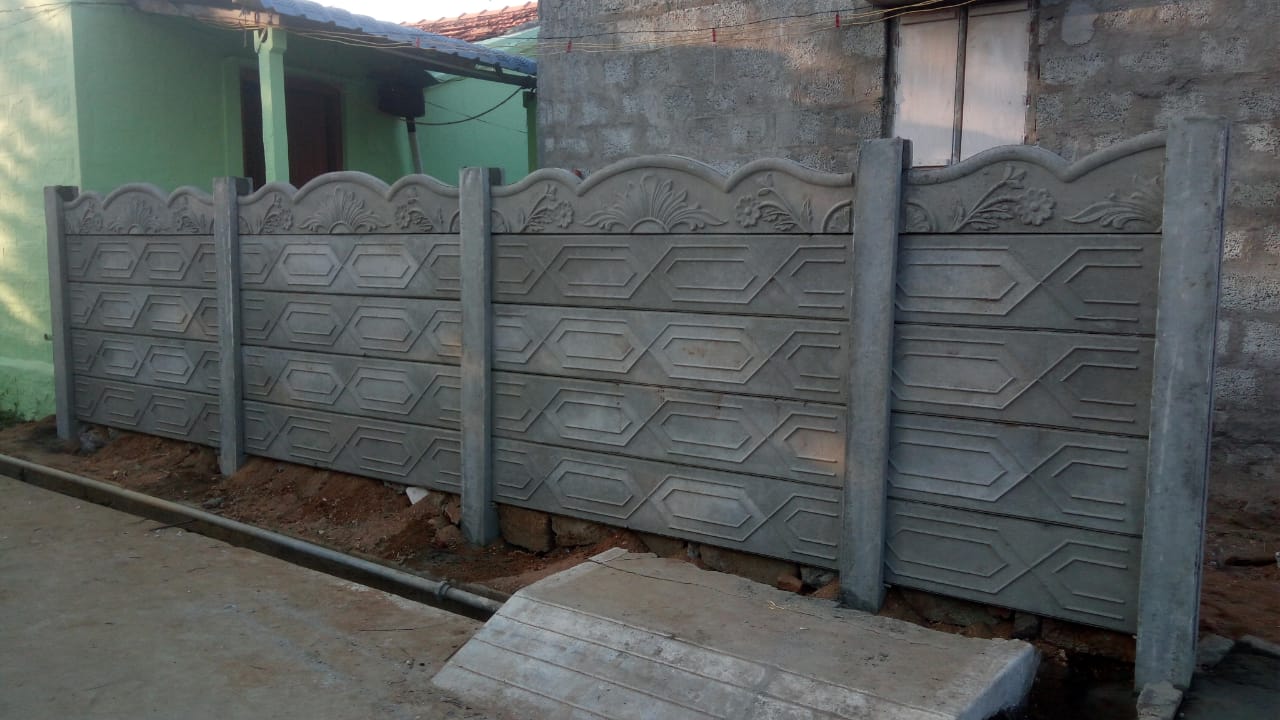 Steel enforced Pillars with Pre-Stressed high tensional Steels bars and Cement Wall Slaps pre casting integrally colored high strenght concreate materials. And our products are submerged into water tanks for 5-6 days. to ensure the slaps and pillars are well settled to gain more strenght.